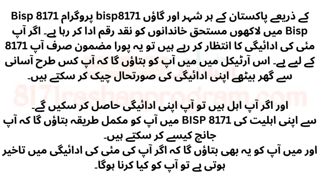Bisp 8171 program is paying cash to millions of deserving families in every city and village of Pakistan through bisp 8171. If you are waiting for Bisp 8171 May payment then this entire article is just for you. In this article I will tell you how you can easily check your payment status from home.